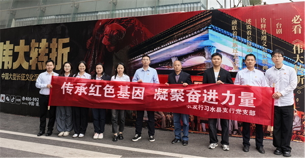 | 为庆祝中华人民共和国成立75周年,弘扬遵义会议精神,传承红色基因,赓续红色血脉,凝聚奋进力量。近日,农发行习水县支行党支部开展“传承红色基因 凝聚奋进力量”主题党日活动,组织全体党员干部到遵义伟大转折剧场观看大型主题情景舞台剧《伟大转折》。 《伟大转折》以中央红军长征转战贵州期间,召开的以遵义会议为标志的一系列重要会议及四渡赤水等战斗战役为主线。中央红军血战湘江后,通道转兵,西入贵州,突破乌江,攻占遵义城,于1935年1月15日至17日召开了彪炳史册的遵义会议。在会上,毛泽东以高超的斗争艺术,巧妙的斗争策略,既修正了错误,又团结了同志;既化解了风险,又统一了思想,从而使遵义会议在最危急关头挽救了党、挽救了红军、挽救了中国革命。而后,红军在毛泽东的超高的军事指挥下,灵活作战,迂回穿插,四渡赤水,南渡乌江,佯攻贵阳,威逼昆明,巧渡金沙江,摆脱了蒋介石几十万大军的围追堵截,粉碎了敌人围歼红军于川、黔、滇边境的计划,取得了战略转移中具有决定意义的胜利。同时,以韩连长、二局报务员小露、军医小华佗为代表的红军普通官兵的成长经历为辅线,塑造出红军指战员为信仰而战、为人民而死得壮烈而伟大的光辉形象。 通过沉浸式观看《伟大转折》剧目,让全体党员再次重温红军长征和遵义会议,再次学习党史、感悟初心,再次深刻感悟伟大长征精神和遵义会议精神。演出结束后,大家纷纷表示,演出非常震撼,通过演职人员演绎的那段历史,大家真切感受到红军战士们英勇无畏、坚定信念的精神力量,真切感受到中国共产党必胜的信念和而今迈步从头越的英雄气概。心中有信仰,脚下有力量,在今后的工作中,大家将继续传承和发扬好长征精神和遵义会议精神,立足岗位,履职尽责,为实现中华民族伟大复兴的中国梦贡献力量。(何 茜) |