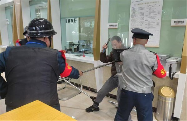 以“演”促“练”,以“练”促“防” ——农发行黔西市支行开展防抢防暴演练 “一名男子进入银行营业大厅,伺机对正在办理业务的客户进行抢劫并向外逃跑,保安人员发现后,迅速作出反应拿起盾牌和脚叉将其控制在大厅内,银行工作人员随即按下联网报警系统及拨打110电话说明现场情况……” 为加大防抢防暴工作力度,有效预防各类突发事件,切实保障人身安全、财产安全,农发行黔西市支行于近日开展了防抢防暴演练,进一步增强员工安全防范意识和应急处置能力。 演练过程中,该行员工与保安及时应对、紧密配合,圆满地完成了本次演练任务。此次演练是对该行防抢防暴应急预案的一次实践检验,该行将认真总结演练成效,完善相应应急措施,持续加大安全知识培训,不断提升员工应急处置水平和能力,筑牢全行安全壁垒。(陈诚) |
